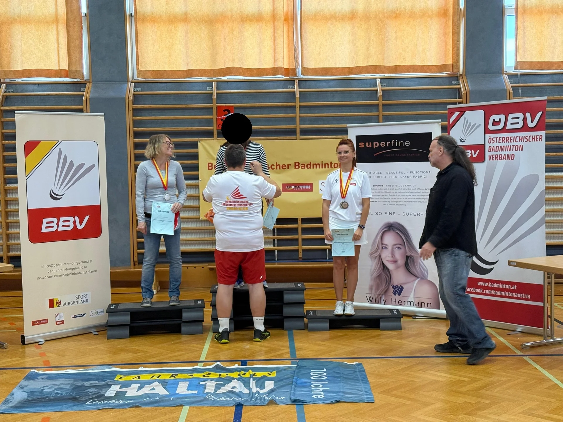Sabine Sigmund bewies einmal mehr ihre Klasse mit zwei Silbermedaillen im Dameneinzel (DE) und Damendoppel (DD), sowie Bronze im Mixed-Doppel mit Martin Stanzl.